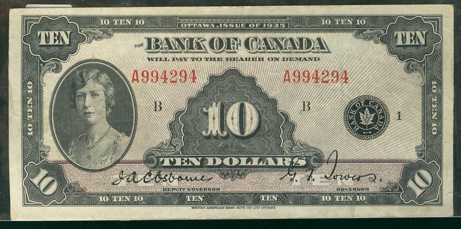 1935 $10 BC-7 #A99429. An original VF/EF example.