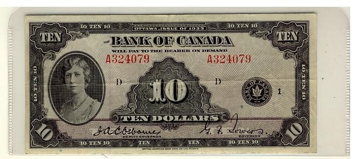 1935 $10 BC-7 Eng #A324079. Nice Fine example.
