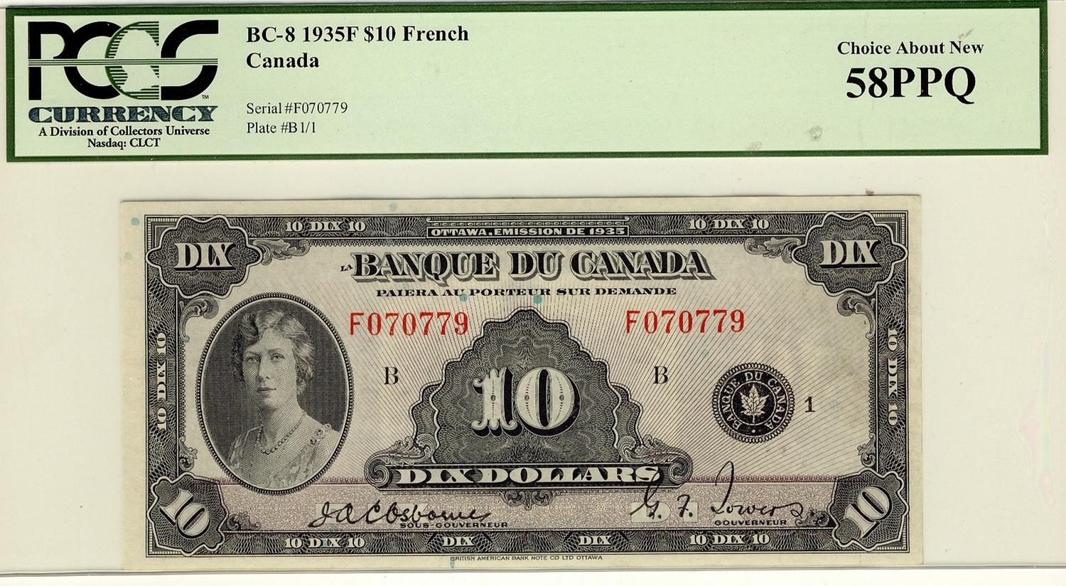 1935 $10 BC-8 #F070779 PCGS AU58PPQ