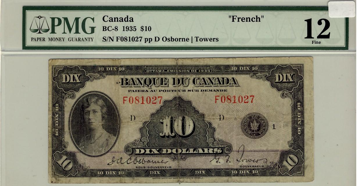 1935 $10 BC-8 #F081027, PMG F12.