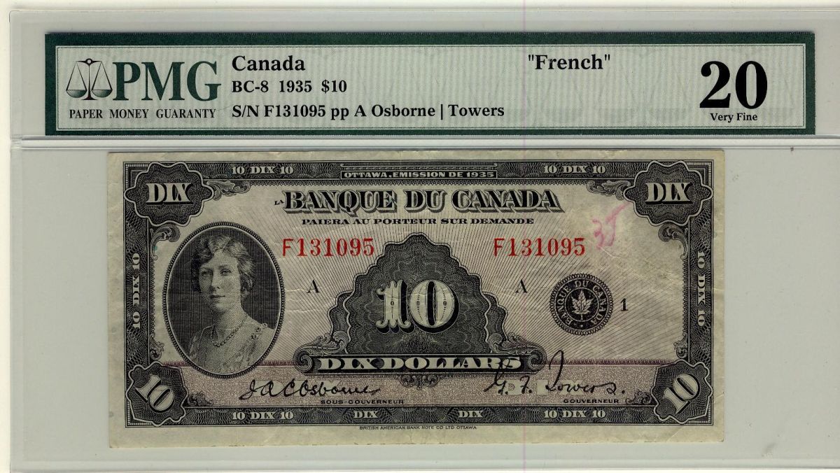 1935 $10 BC-8 #F131095 PMG VF20 Number Annotation,
