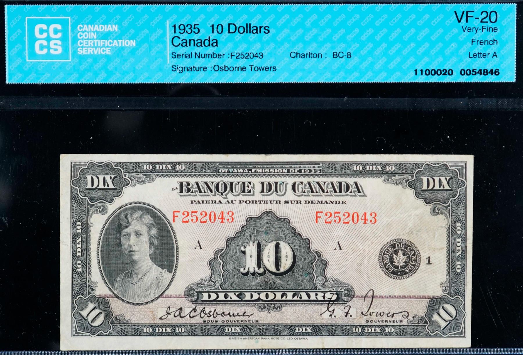 1935 $10 BC-8 #F252043 CCCS Very Fine-20