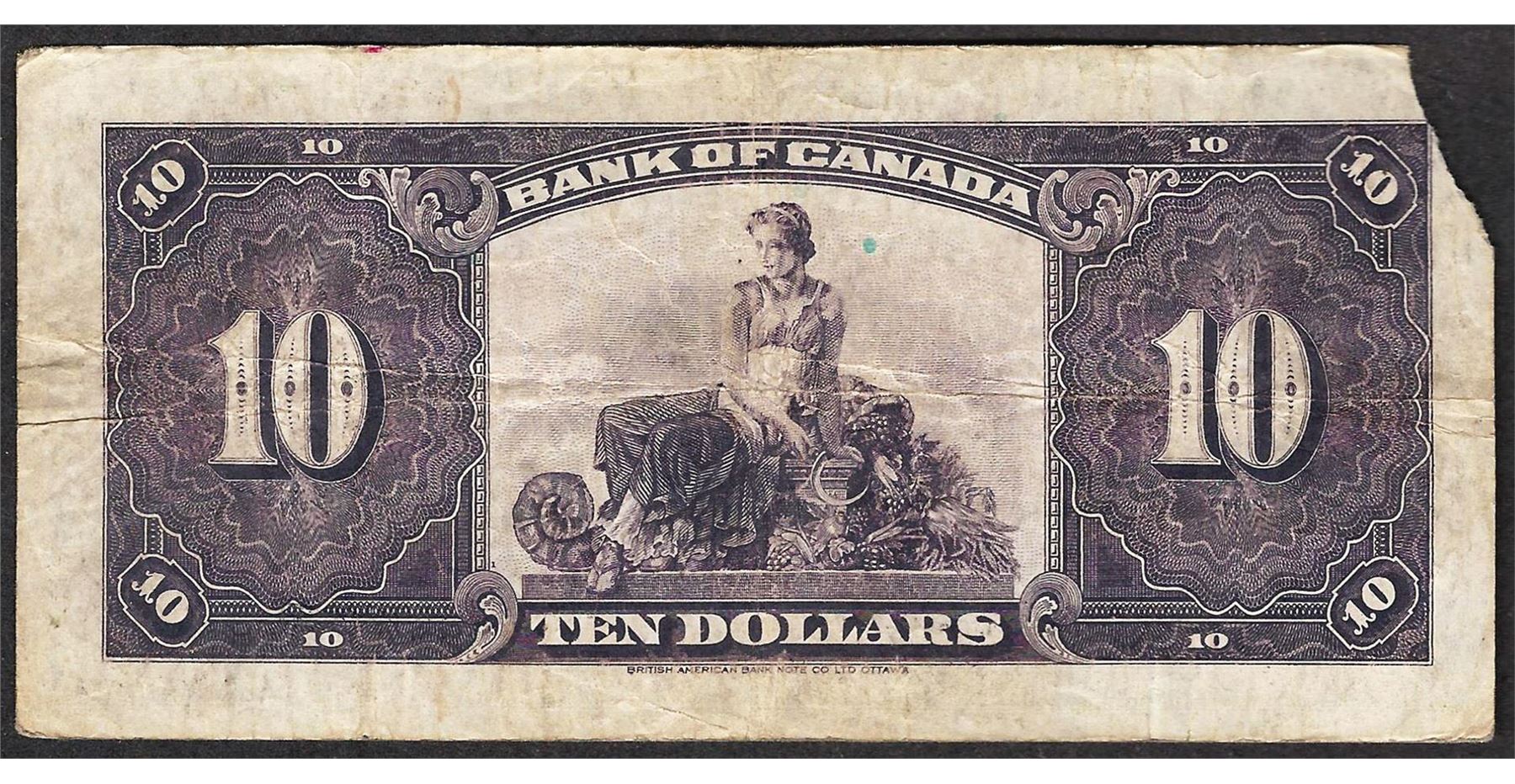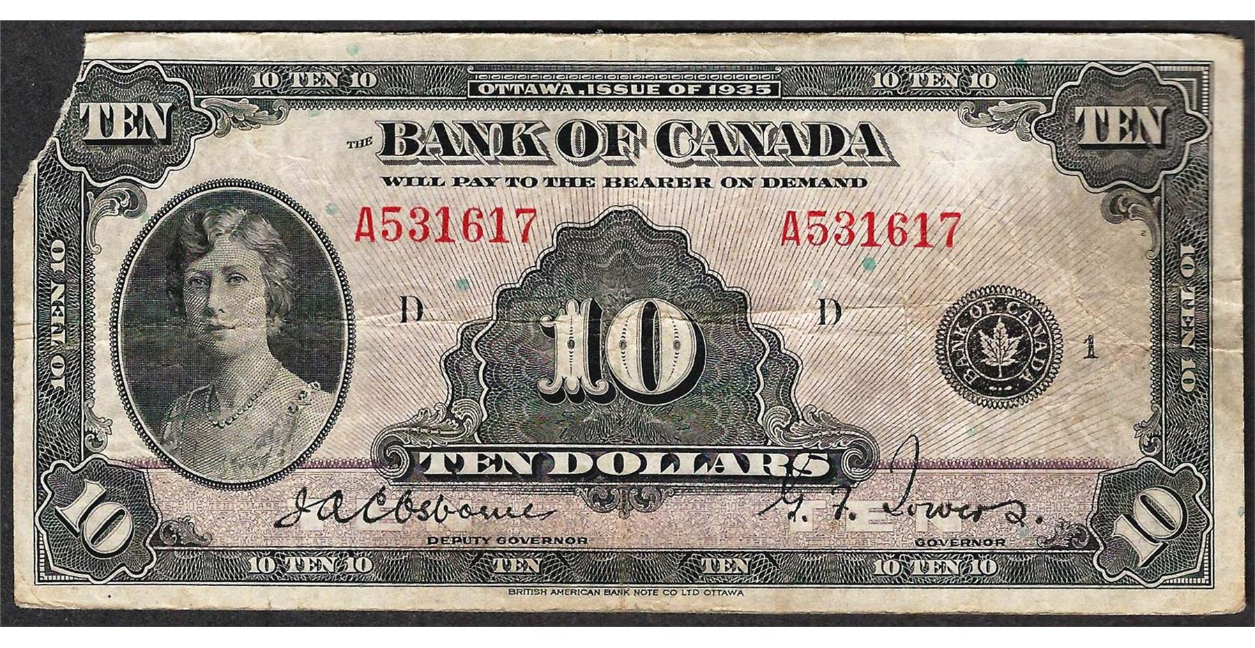 One 1935 $10 Bank of Canada Note.