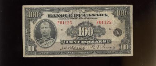 1935 $100 A18673 English Text VF+, clean and bright but with a crayon check mark on face