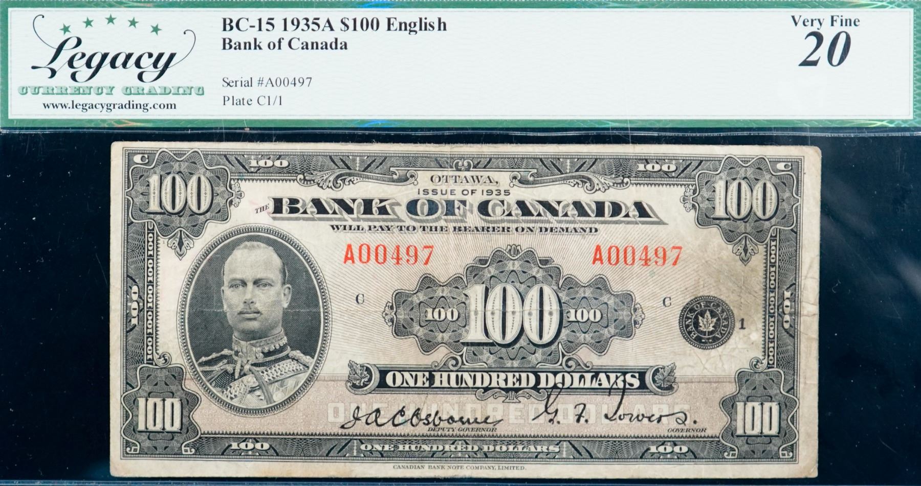1935 $100 BC-15 #A00497 Legacy Very Fine-20 with issues.