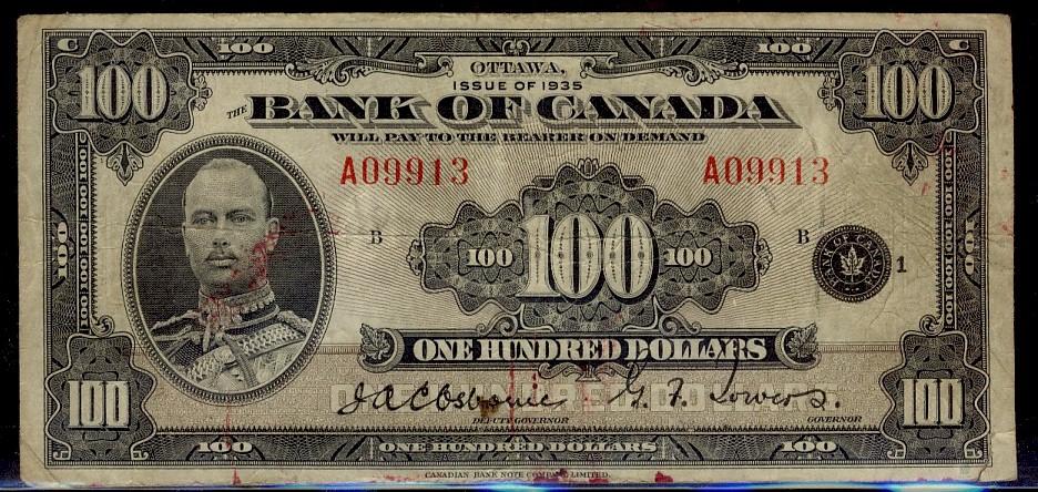 1935 $100 BC-15 #A09913 CCCS F15. Tear/Bank Stamp.
