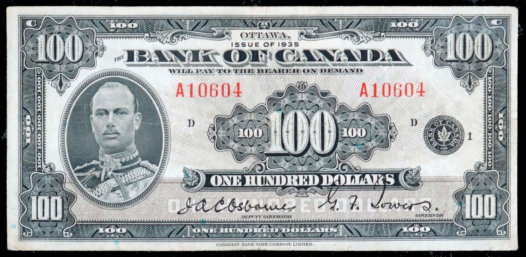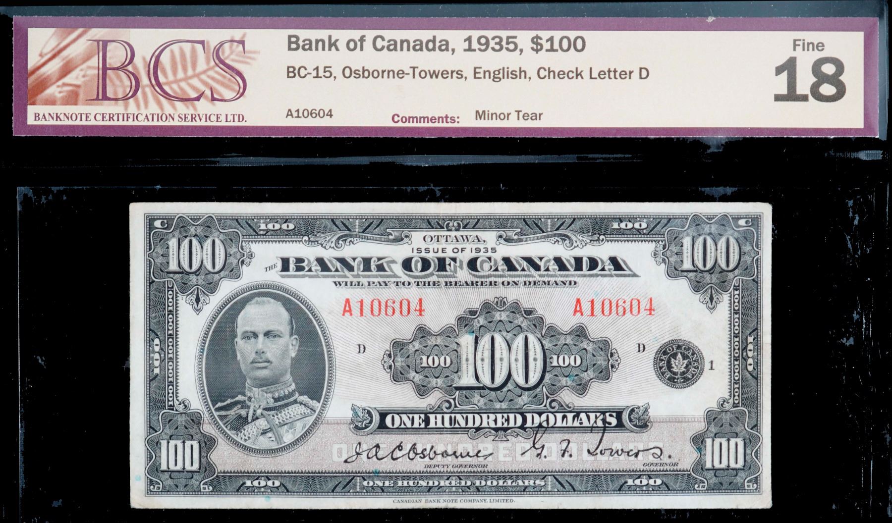 1935 $100 BC-15 #A10604, BCS F18 with minor issues.