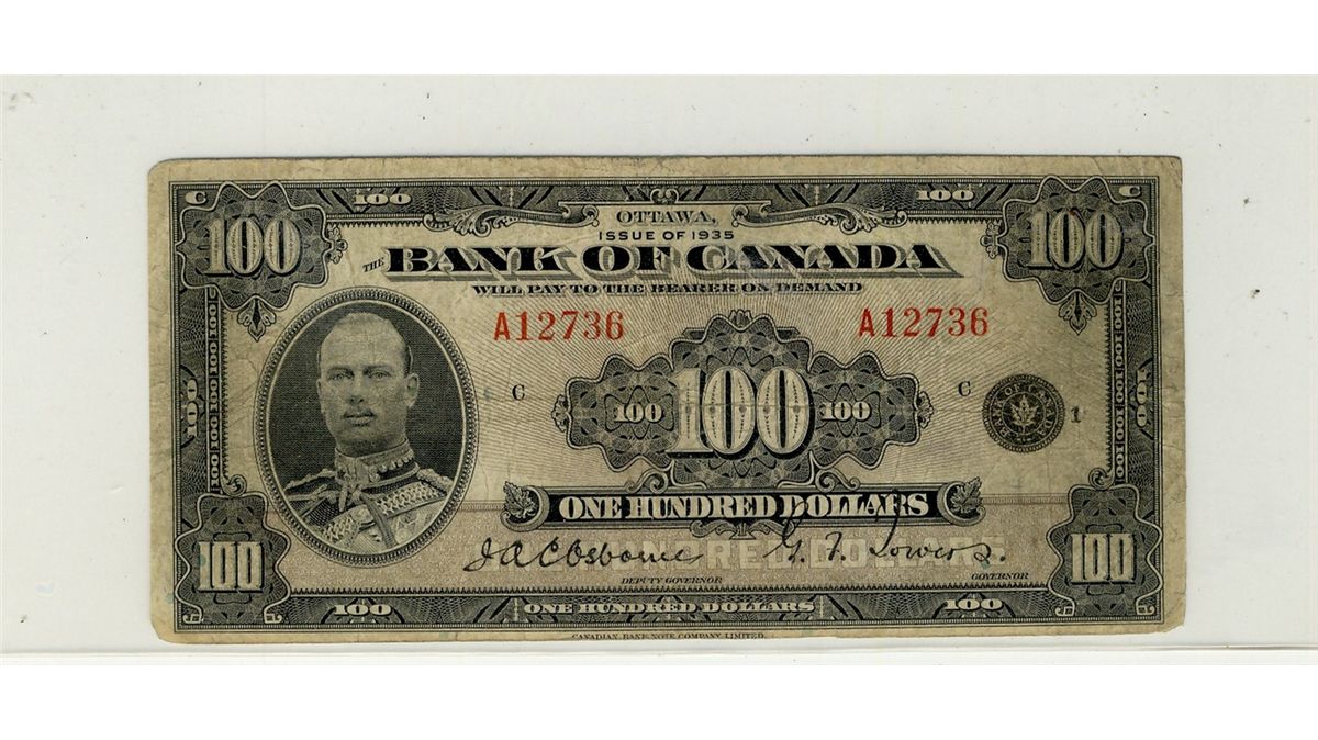 1935 $100 BC-15 #A12736. A Fine issue with some minor corner issues.