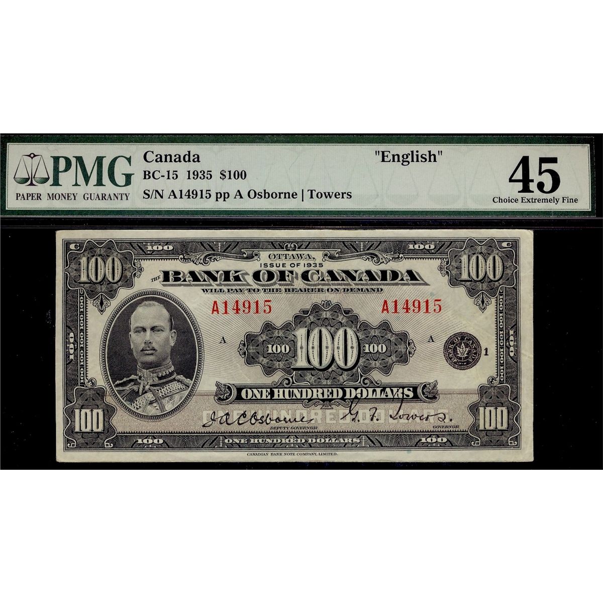 1935 $100 BC-15 #A14915. PMG EF45. Choice and bright. Very attractive example.