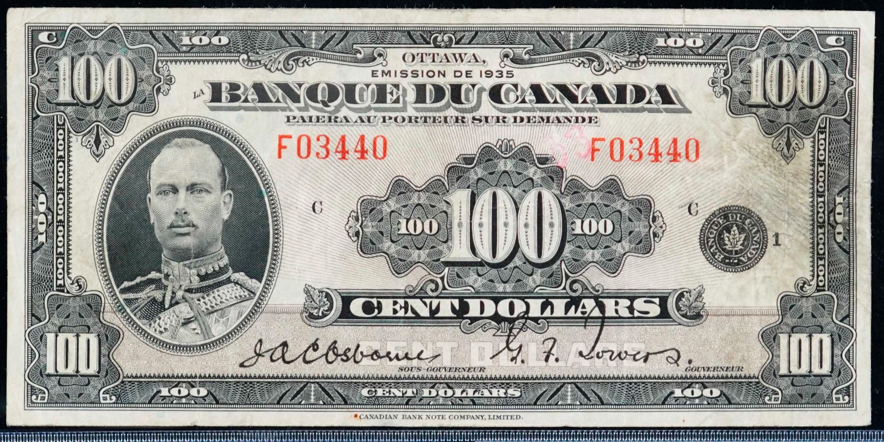 1935 $100 BC-16 #F03440 CCCS Choice Fine-15, A bright example with minor issues. A nice and very attractive example. Extremely scarce and rarely offered in any condition. Pop. Only 66 notes recorded.