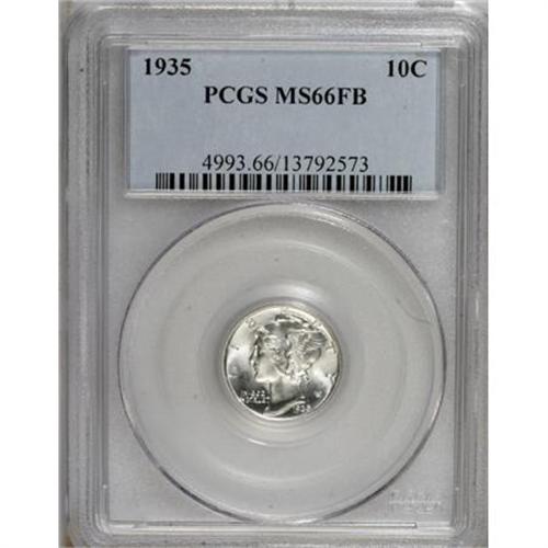 <B>1935 10C MS66 Full Bands PCGS.</B></I> PCGS Population (696/196). NGC Census: (275/112). Mintage: 58,830,000. Numismedia Wsl. Price for NGC/PCGS coin in MS66: $80. (#4993)<BR><BR><B>Coin Engraver:</B> Adolph A. Weinman<BR><BR><b>Shipping:</b> Coins & Currency (<a target="_blank" href="http://www.heritageauctions.com/common/shipping.php">view shipping information</a>)