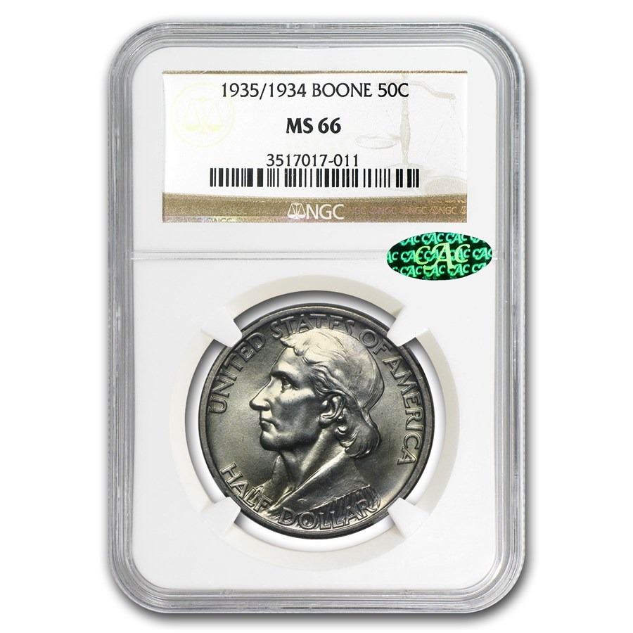 One 1935/1934 Boone Commemorative Half Dollar Coin NGC MS66 CAC.