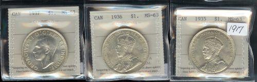 1935, 1936, 1937 all three coins are ICCS graded MS-63. A nice lot!