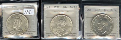 1935, 1936, 1937 all three coins are ICCS graded MS-63. A nice lot!