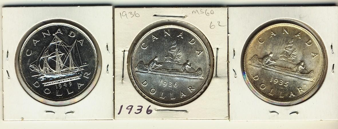 1935, 1936, 1949 $1, lot of 3 coins. All MS60 or better.