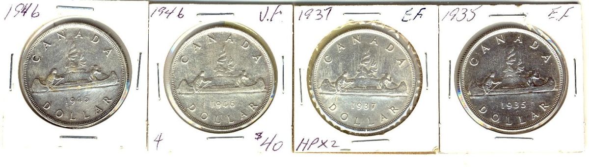 1935, 1937 & 1946(2) $1. Lot of 4 coins all VF cleaned.