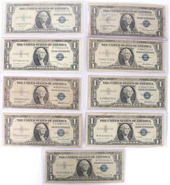 1935-1937 United States $1 Silver certificates notes to include two 1957 (A) notes, two 1957 notes, and five 1935 (A, 2x E, F, G) notes.