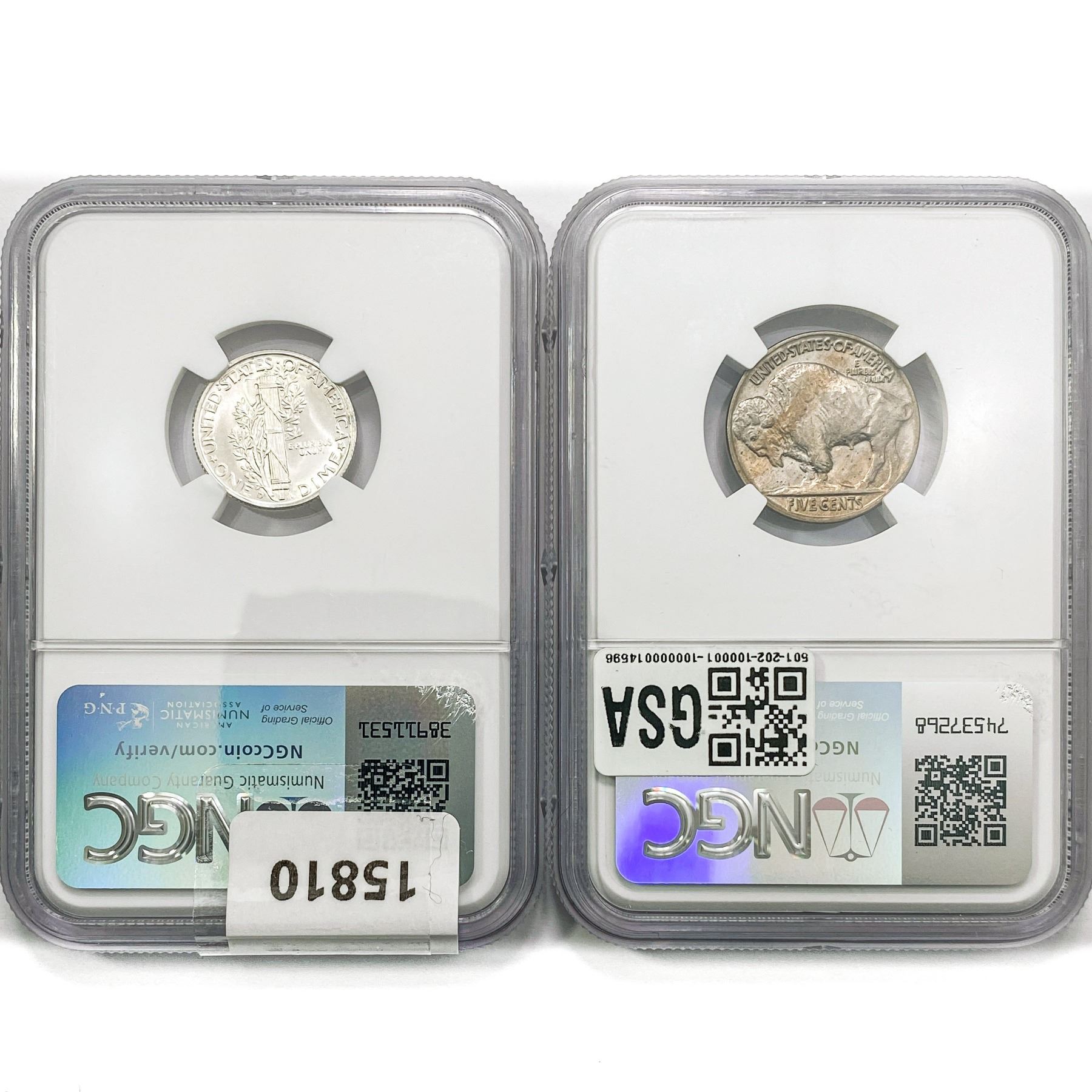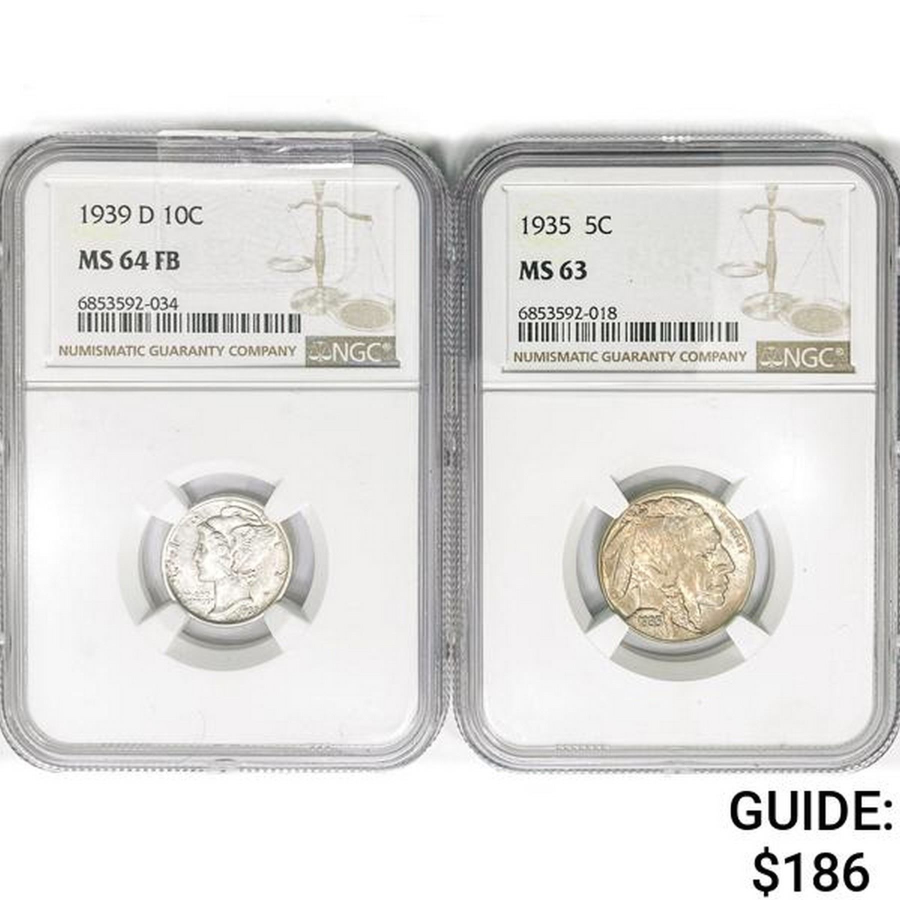 1935&1939 [2] 1 5C, 1 10C NGC MS63/64