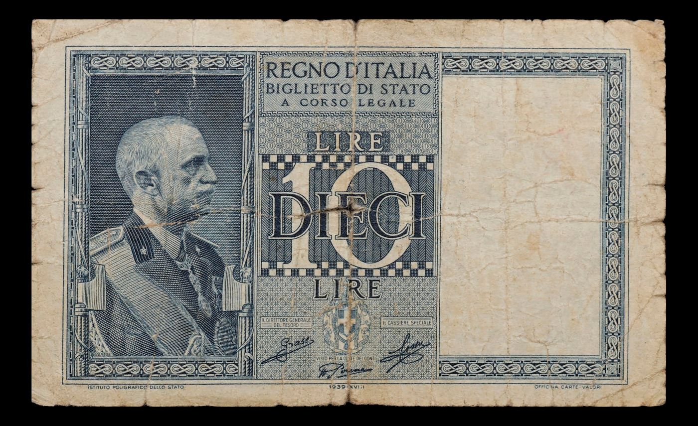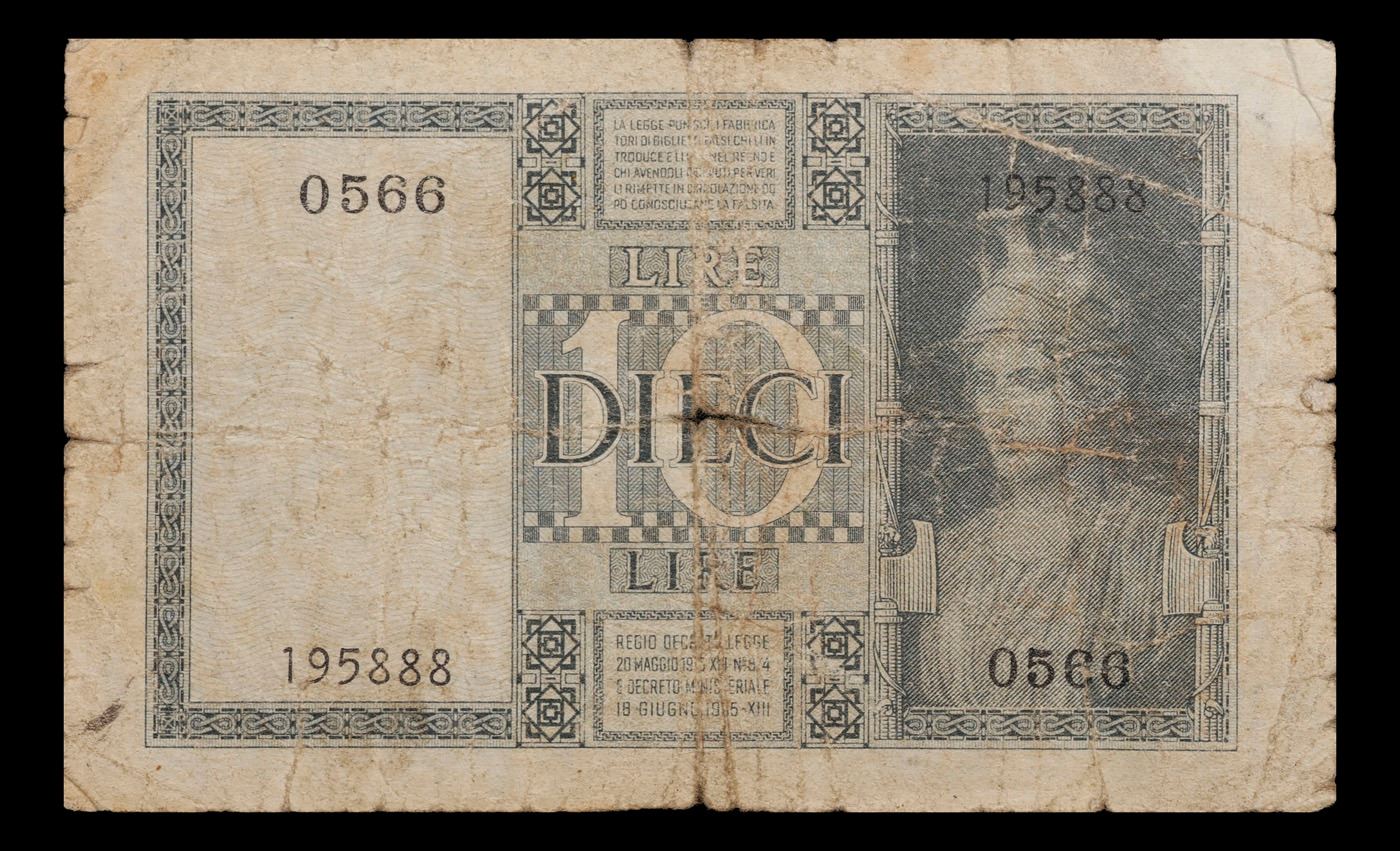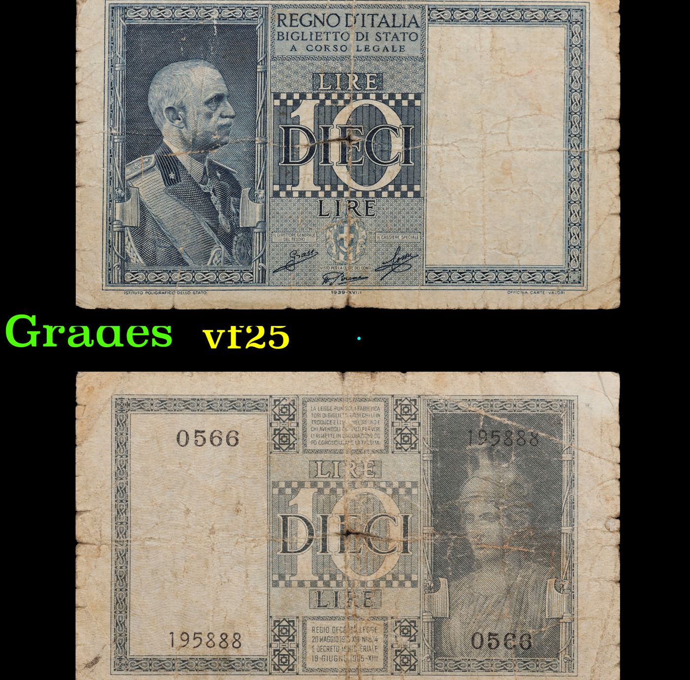 1935-1944 Italy 10 Lire Note P# 25C Grades vf+.