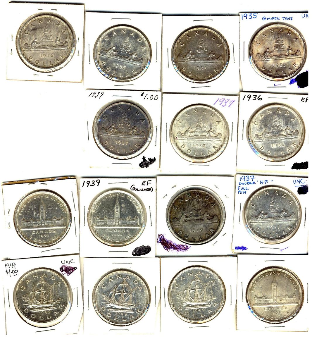 1935-1949 $1. Mixed lot of coins including 1935(3), 1936(2), 1937(3), 1938, 1939(3) & 1949(3). VG to UNC. Should be viewed.