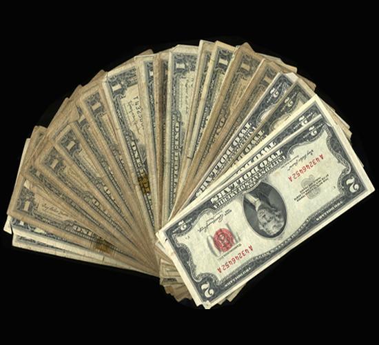 1935-1957 $1 & $2 US Notes/Silver Certs Lot of 59 Pieces $64 Face Value With Faults (CUR-06246)