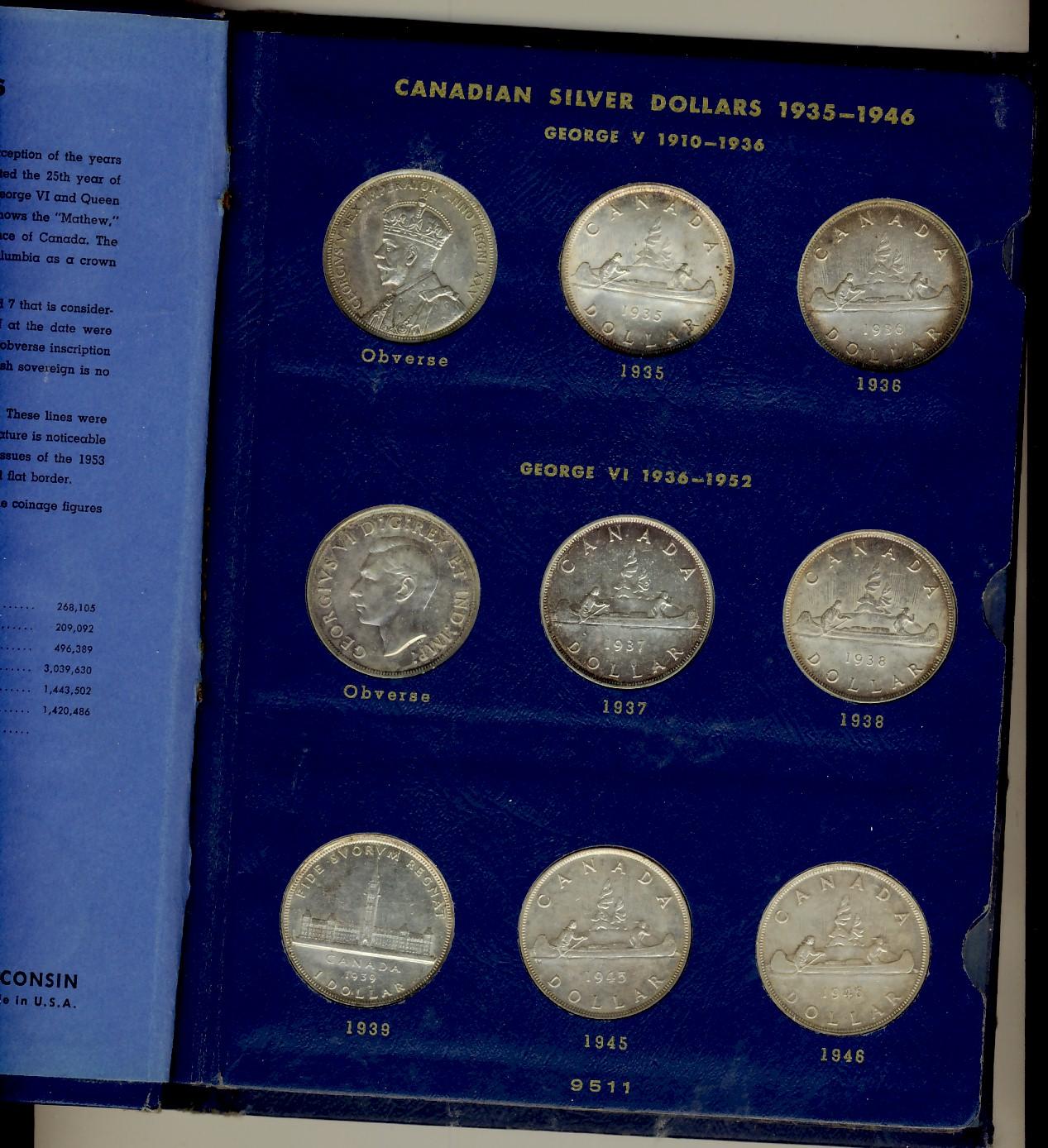 1935 - 1966 $1 Set in Whitman Holder. Set includes key dates, 1945, 1947 Bl, 1947 Ptd, 1947 ML, 1955 Arnprior but NO 1948. 31 coins in all, missing some dates. VF to AU.