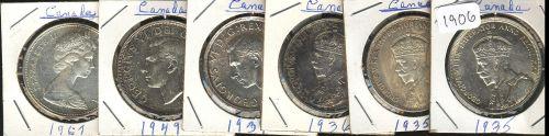 1935 (2), 1936, 1939, 1949, 1967. Grades vary from EF-40 to MS-62. A nice lot of 6 coins.