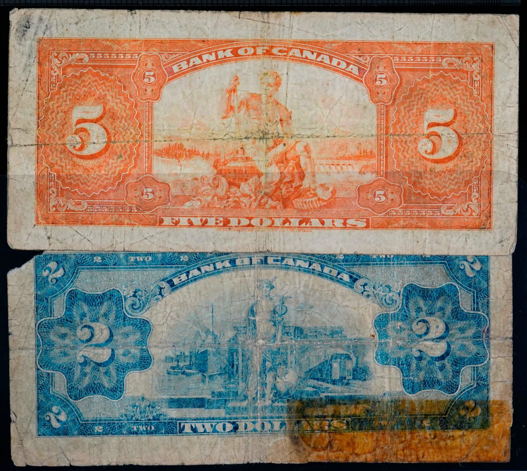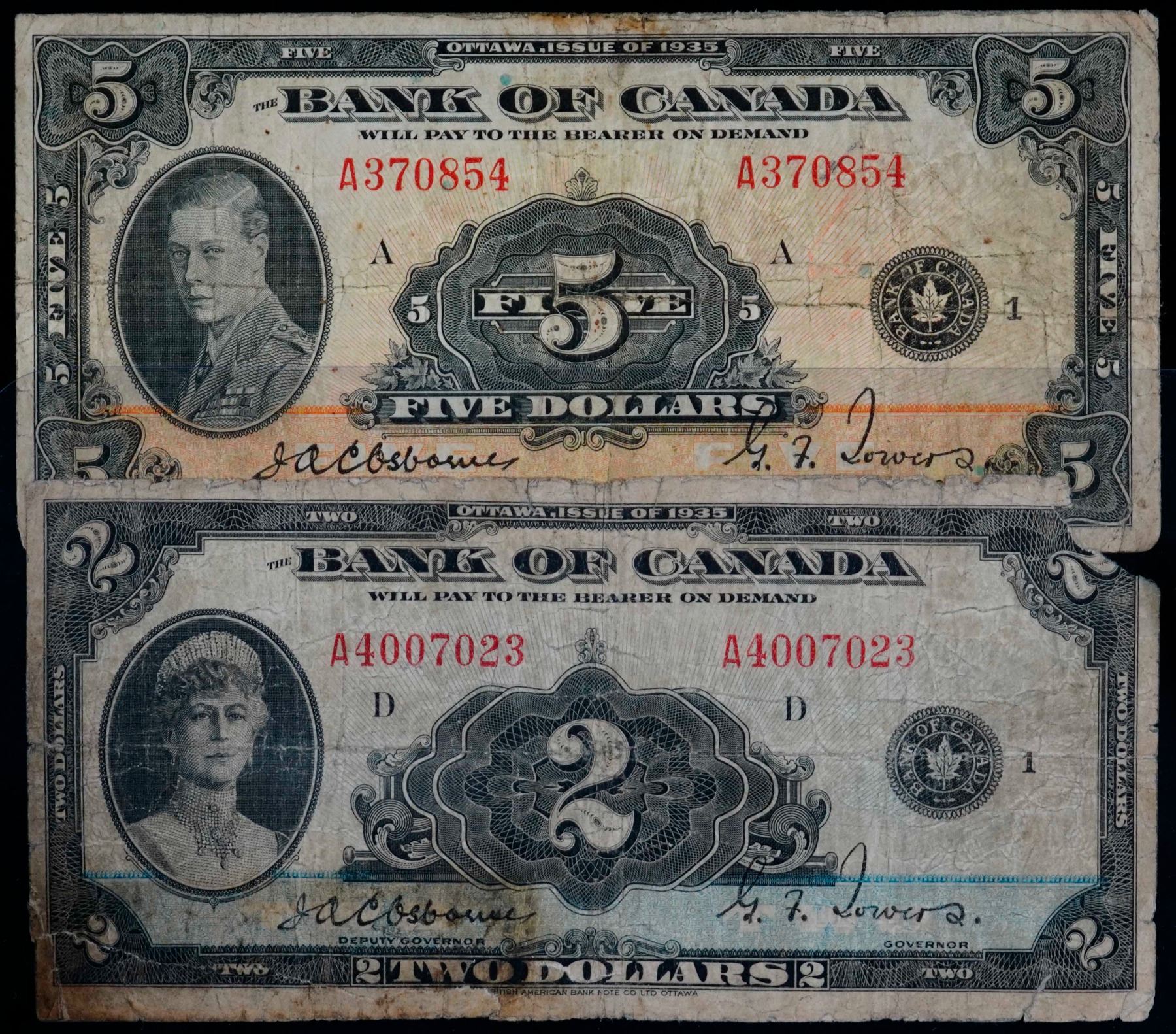 1935 $2 BC-3 & 1935 $5 BC-5, Lot of 2 notes Good to Fine.