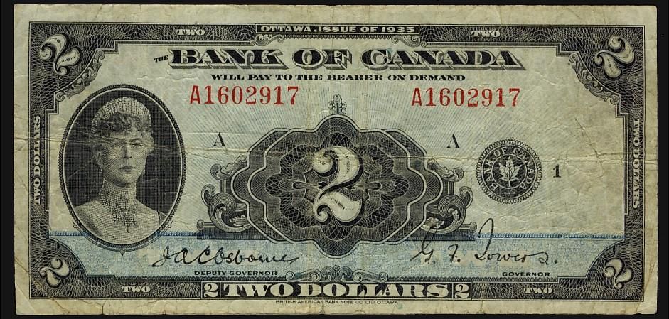 1935 $2 BC-3 #A1602917. Issue in F+ condition.