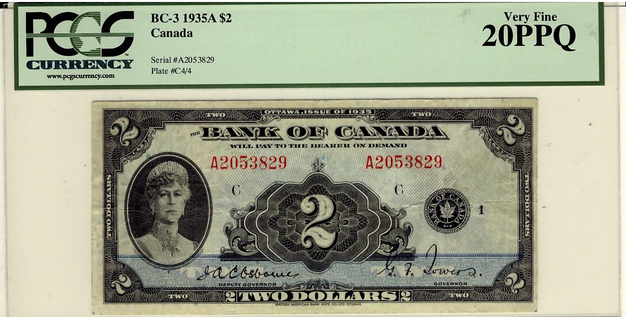 1935 $2 BC-3 #A2053829 PCGS VF20PPQ