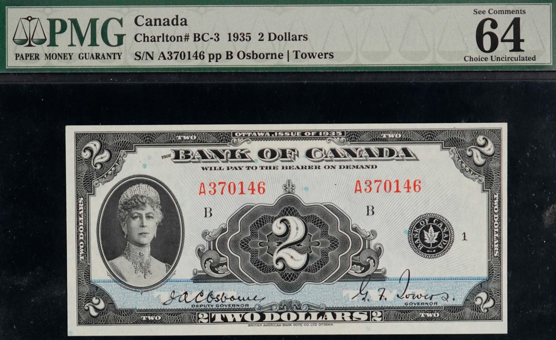 1935 $2 BC-3 #A370146 PMG Choice Uncirculated-64EPQ. A near Gem example with great colours.