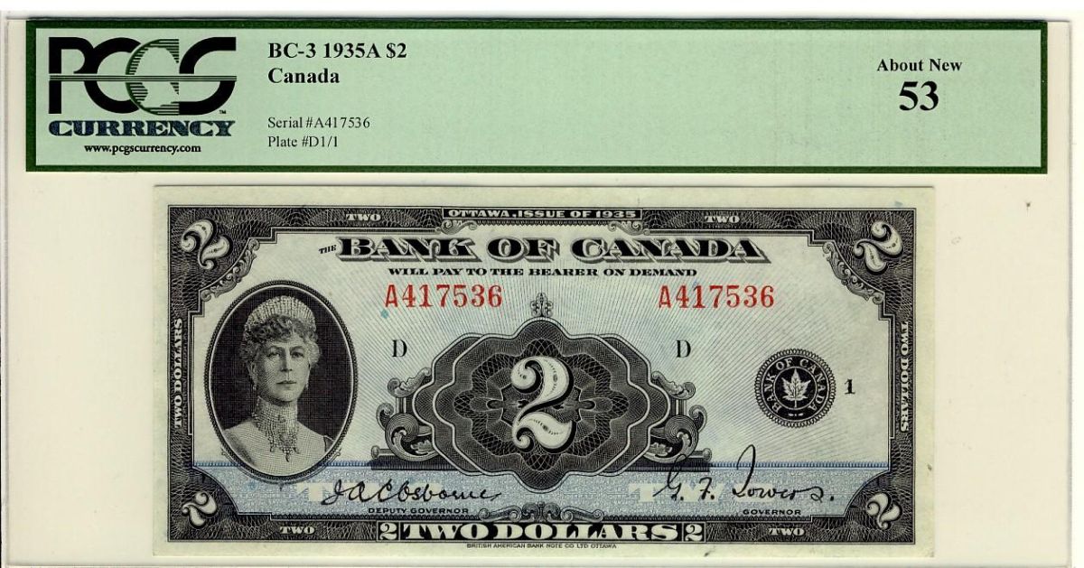 1935 $2 BC-3 #A417536 PCGS AU53.