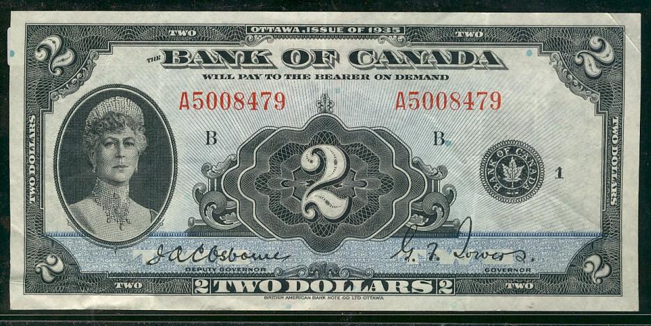 1935 $2 BC-3 #A5008479. A nice clean VF issue.