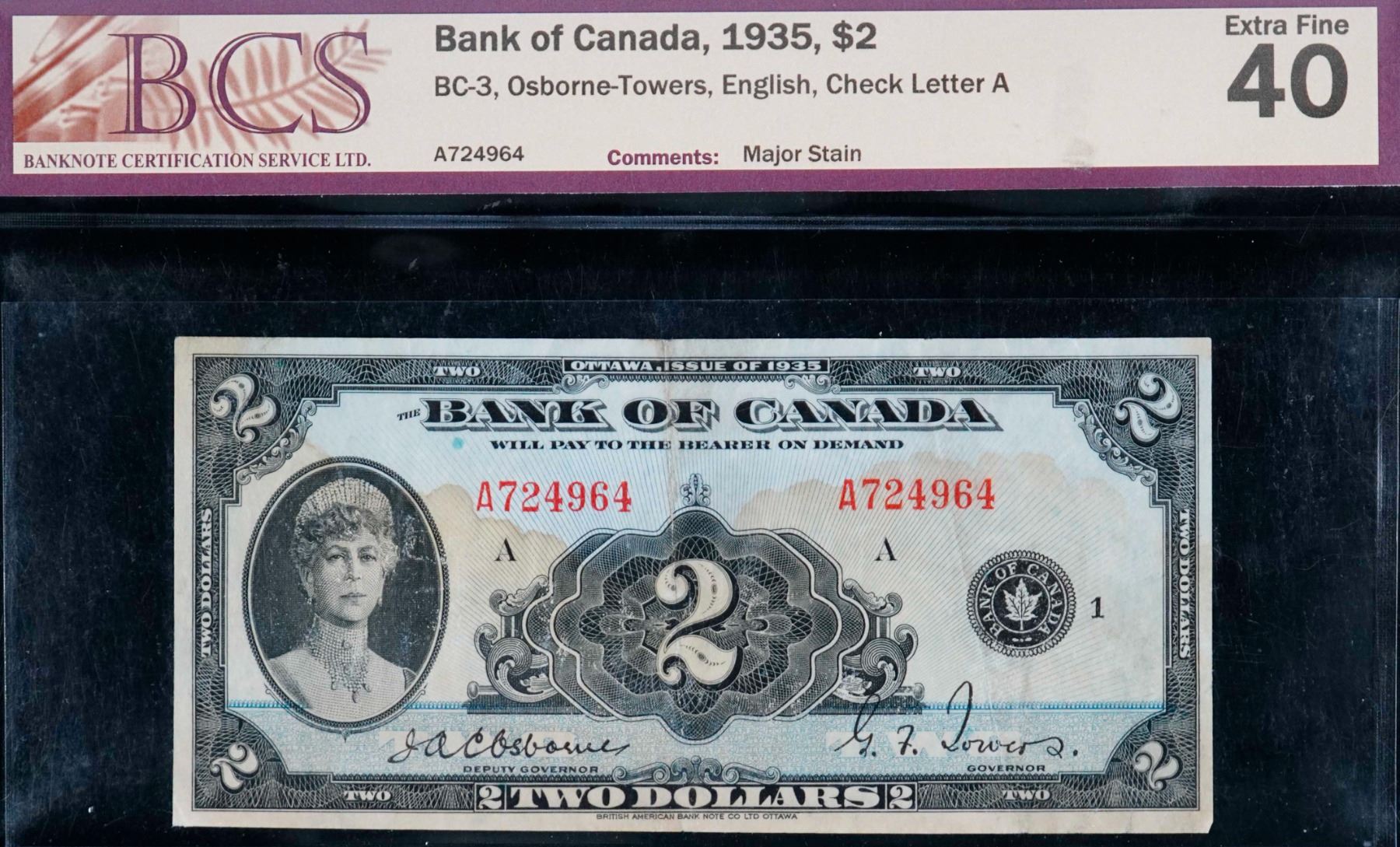 1935 $2 BC-3 #A724964 BCS Extra Fine-40, stain