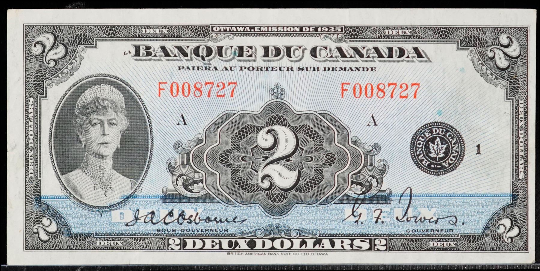 1935 $2 BC-4 #F008727, a bright VF+ example.