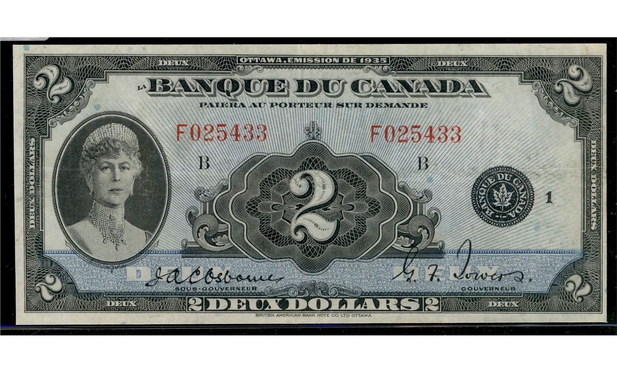 1935 $2 BC-4 #F025433. VF+ for grade.