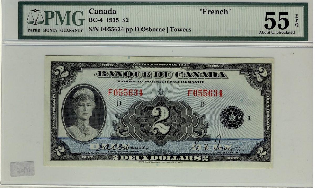 1935 $2 BC-4 #F055634 PMG AU55 EPQ. Looks choice. Bright and flashy' Rare.