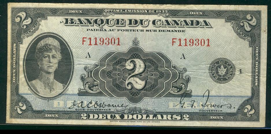 1935 $2 BC-4 #F119301. French issue F/VF in grades.