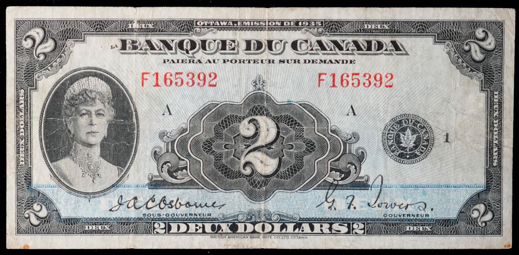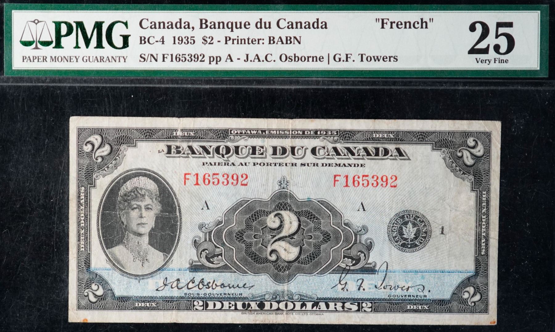 1935 $2 BC-4 F165392 PMG Choice Very Fine-25. Scarce "French Text" example.