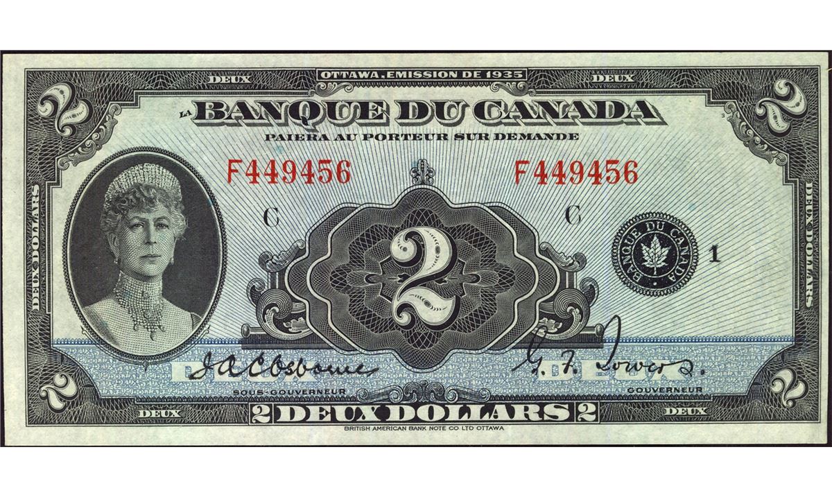 1935 $2 BC-4 #F449456, CCCS AU55. Scarce in choice condition.