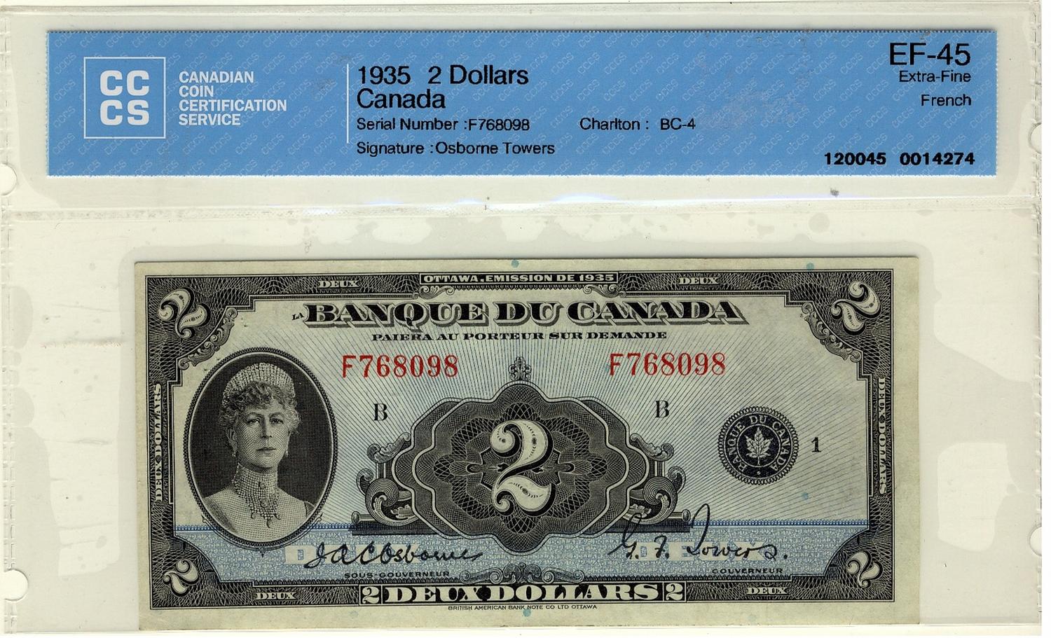 1935 $2 BC-4 F768098 CCCS EF45, a crisp, bright and clean note.