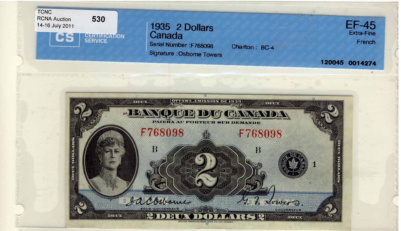 1935 $2 BC-4 F768098 CCCS EF45, a crisp, bright and clean note.
