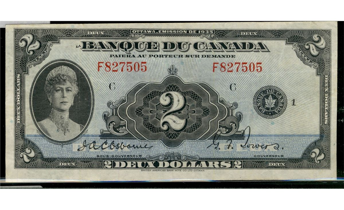 1935 $2 BC-4 #F827505. Bright VF/EF issue.