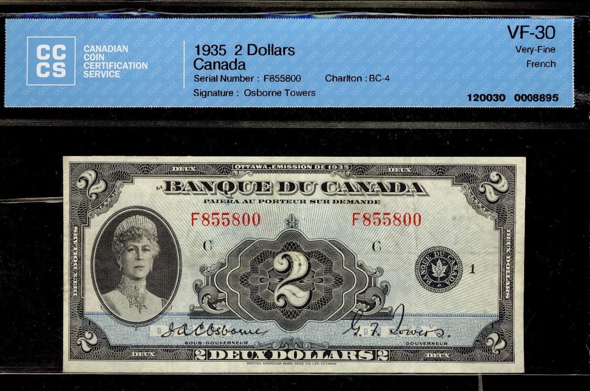 1935 $2 BC-4 #F855800 CCCS VF30.