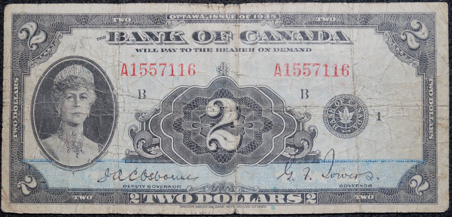 1935 $2 Dollar , BC-3, Bank of Canada Bank note