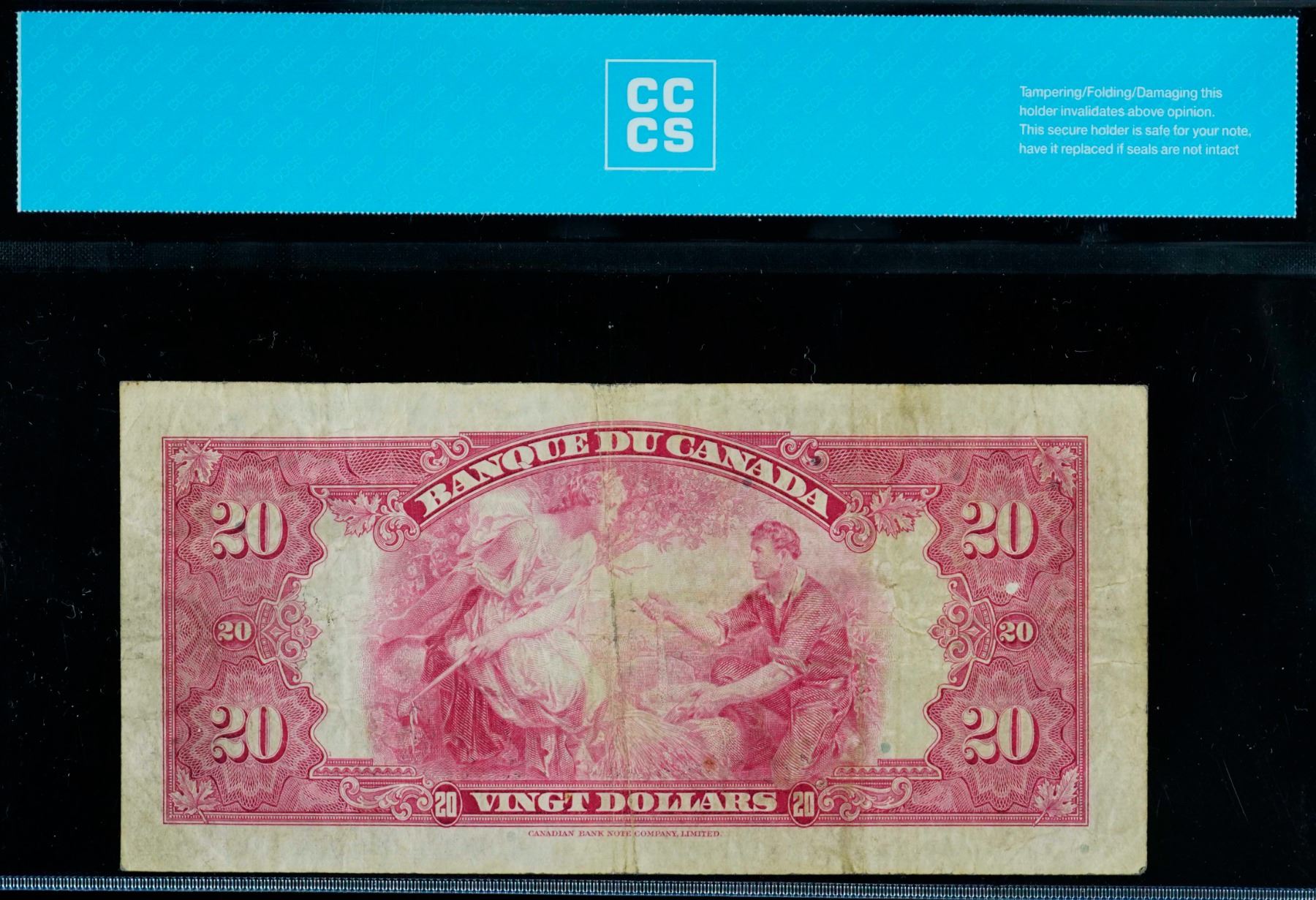 1935 $20 BC-10 #F002680 CCCS F18. "Rare French Text". A bright and attractive example.