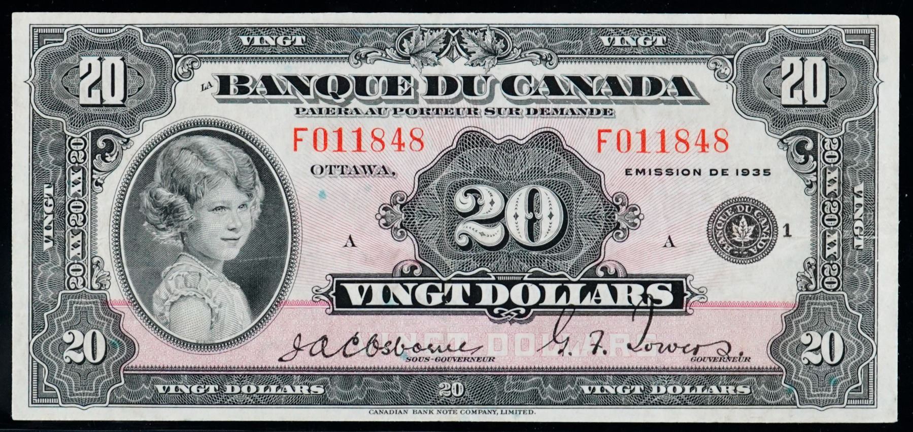 1935 $20 BC-10 #F011848 A bright VF+ example.  Very scarce and seldom offered.