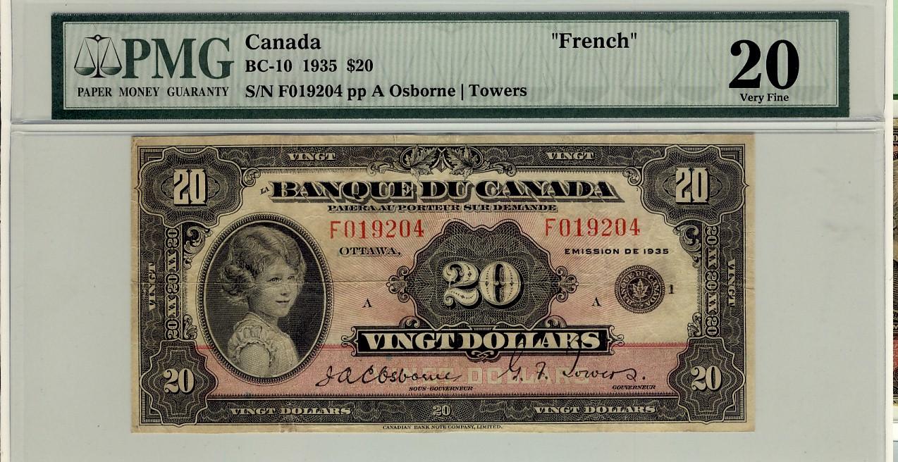 1935 $20 BC-10 F019204 PMG VF20, scarce in this condition.