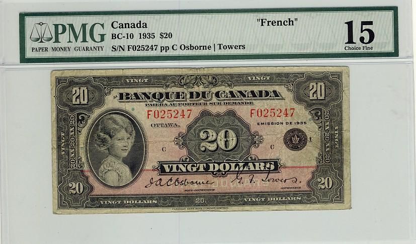 1935 $20 BC-10 F025247 PMG F15. An affordable FRENCH example.