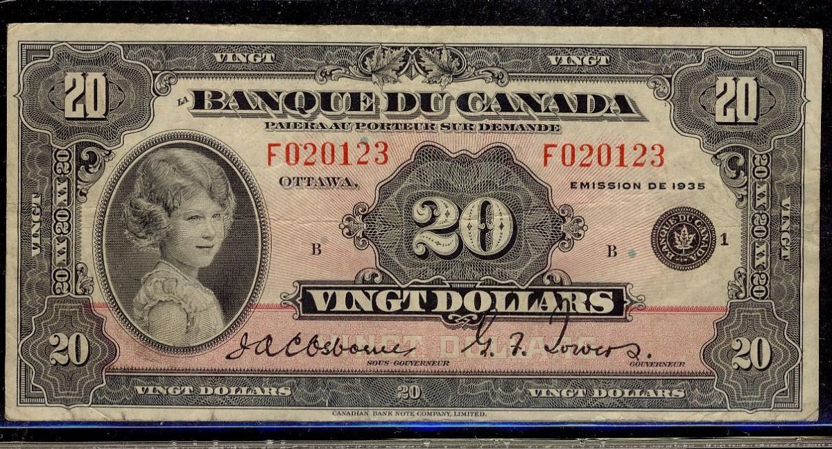 1935 $20 BC-10 French #F020123. F-VF issue.
